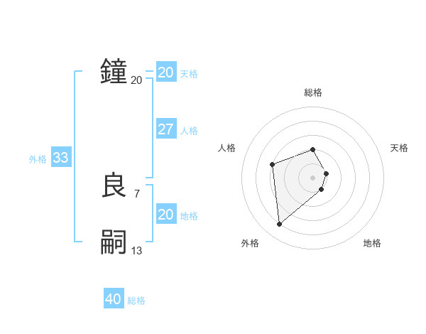 鐘 良嗣さんの天格は20画の1点!