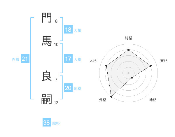門馬 良嗣さんの総格は38画の4点!