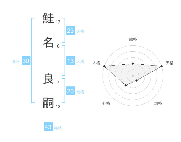 鮭名 良嗣さんの天格は23画の5点!