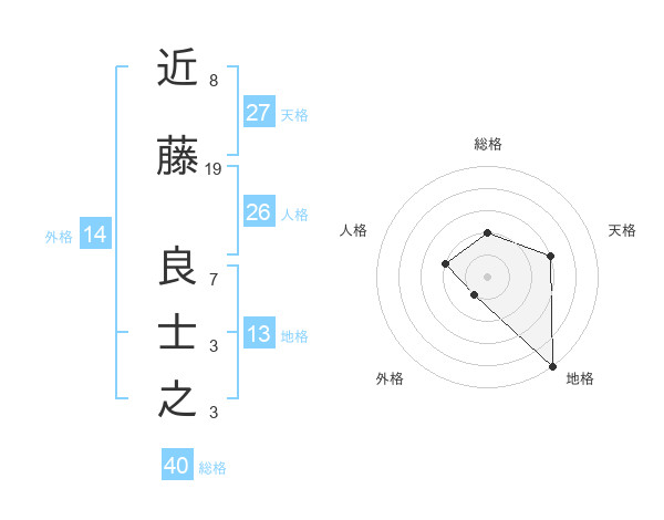 近藤 良士之さんの地格は13画の5点!