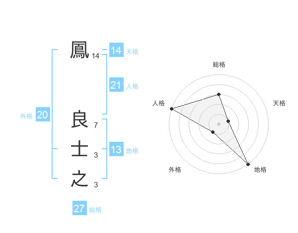 鳳 良士之さんを姓名の画数から五運を鑑定