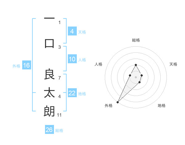 一口 良太朗さんを姓名の画数から五運を鑑定