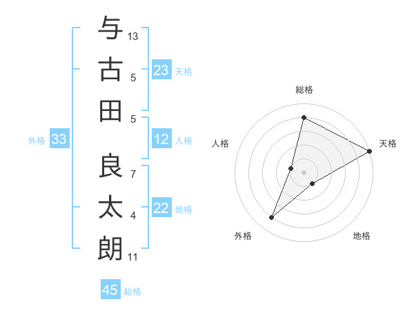 与古田 良太朗さんを姓名の画数から五運を鑑定