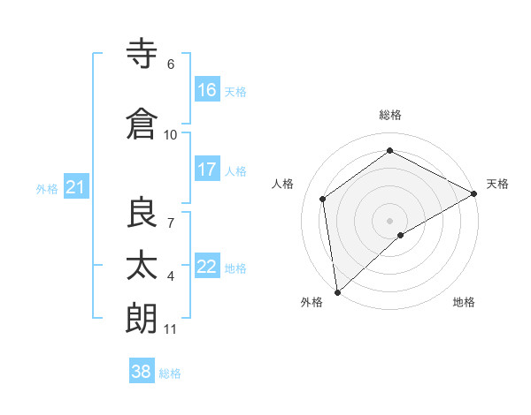 寺倉 良太朗さんの総格は38画の4点!
