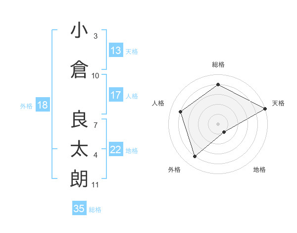小倉 良太朗さんを姓名の画数から五運を鑑定