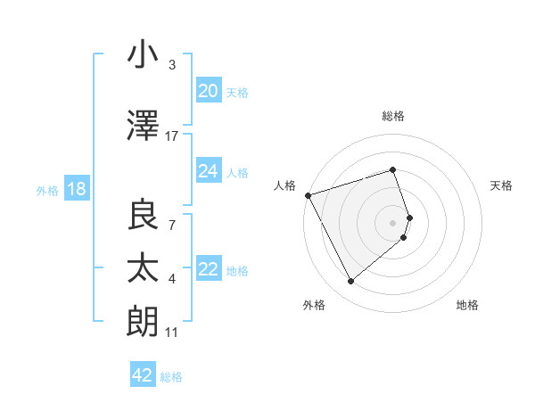 小澤 良太朗さんを姓名の画数から五運を鑑定