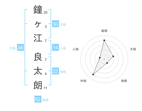 鐘ヶ江 良太朗さんの総格は52画の4点!
