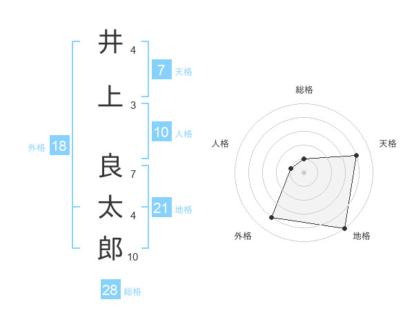 井上 良太郎さんを姓名の画数から五運を鑑定
