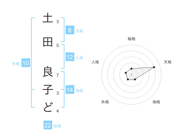 土田 良子どさんの天格は8画の4点!