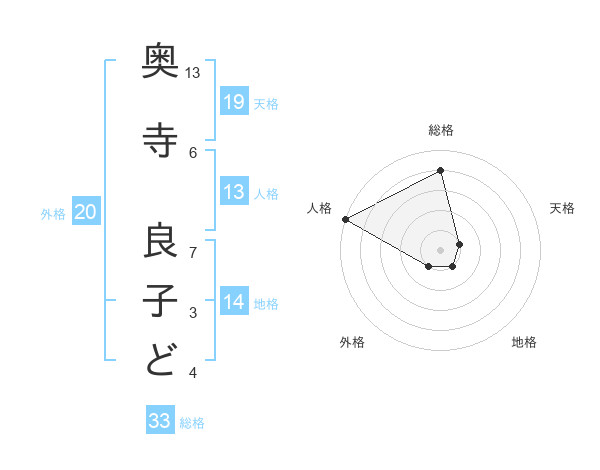 奥寺 良子どさんを姓名の画数から五運を鑑定
