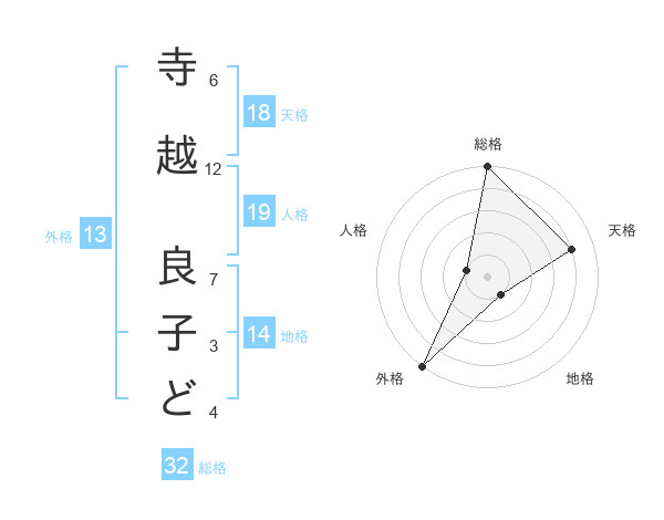 寺越 良子どさんの総格は32画の5点!