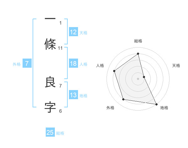 一條 良字さんの総格は25画の4点!