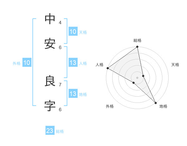 中安 良字さんの地格は13画の5点!