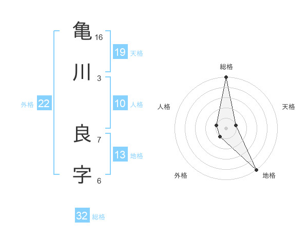 亀川 良字さんの総格は32画の5点!