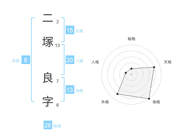 二塚 良字さんの総格は28画の1点!