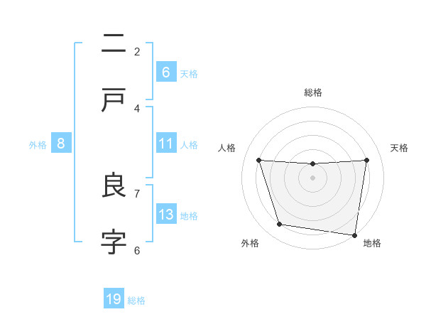 二戸 良字さんの地格は13画の5点!