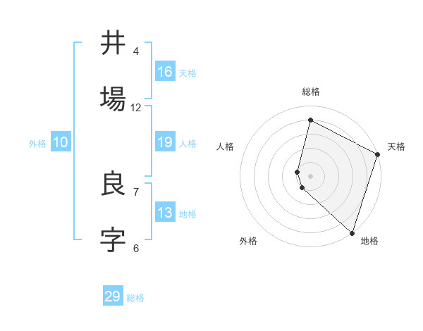 井場 良字さんの総格は29画の4点!