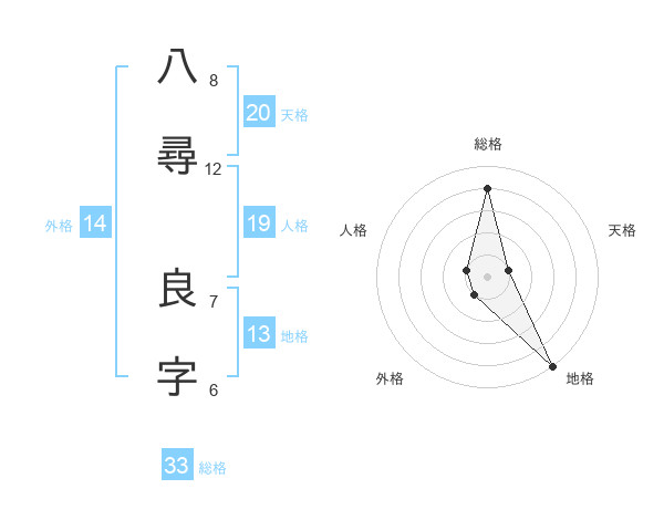 八尋 良字さんの地格は13画の5点!