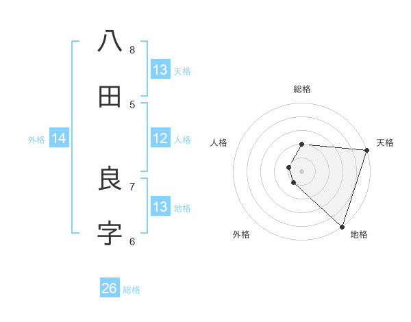 八田 良字さんの天格は13画の5点!