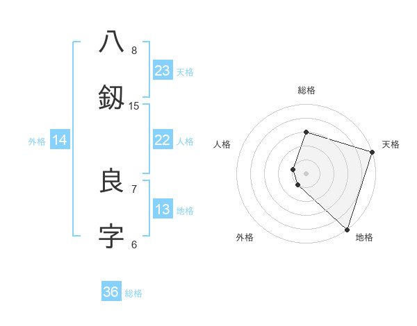 八釼 良字さんの天格は23画の5点!