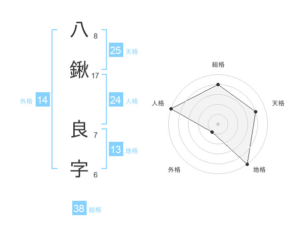 八鍬 良字さんの総格は38画の4点!