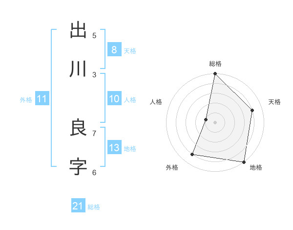 出川 良字さんの総格は21画の5点!