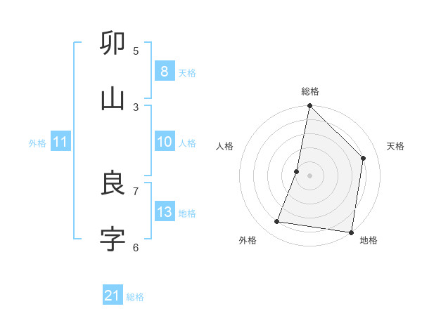 卯山 良字さんの総格は21画の5点!