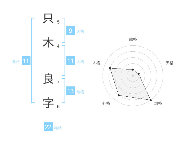 只木 良字さんの地格は13画の5点!