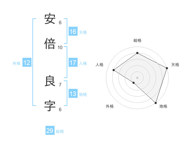 安倍 良字さんの天格は16画の5点!