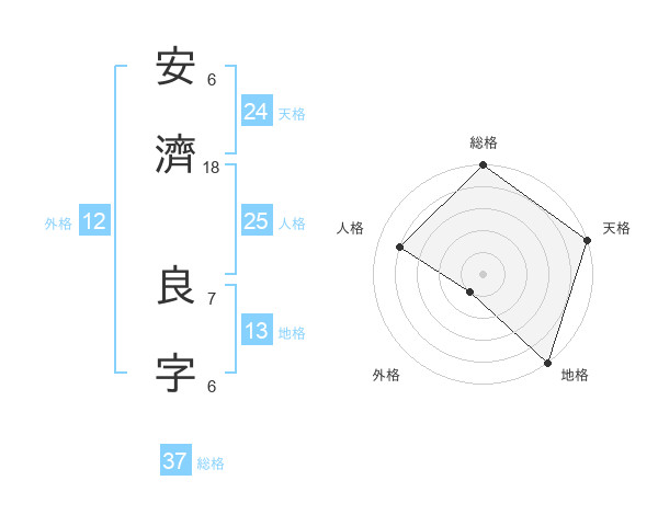 安濟 良字さんの総格は37画の5点!