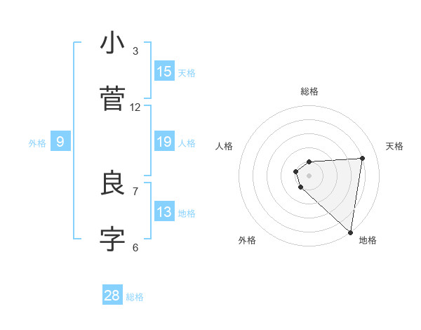 小菅 良字さんの天格は15画の4点!