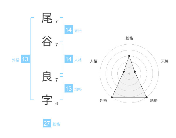 尾谷 良字さんを姓名の画数から五運を鑑定