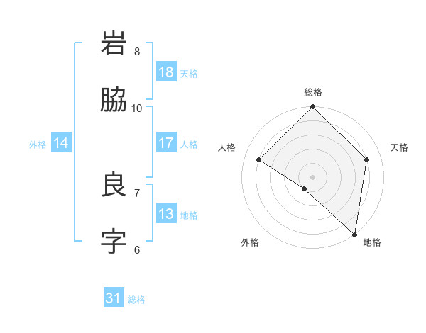 岩脇 良字さんの総格は31画の5点!