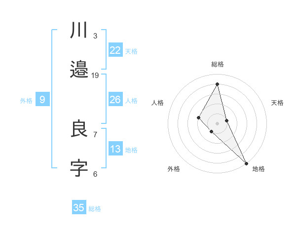 川邉 良字さんの総格は35画の4点!