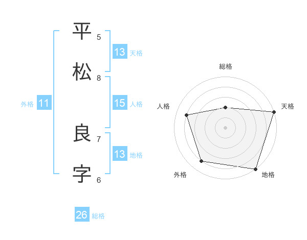 平松 良字さんの天格は13画の5点!