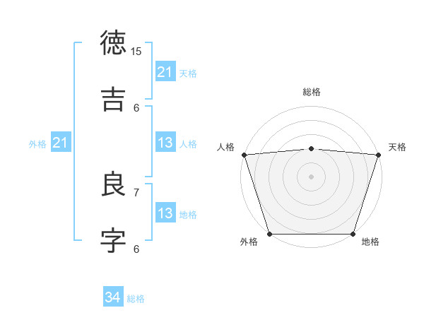 徳吉 良字さんの天格は21画の5点!
