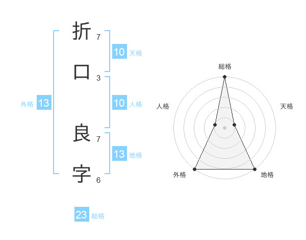 折口 良字さんの総格は23画の5点!