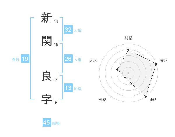 新関 良字さんの総格は45画の4点!