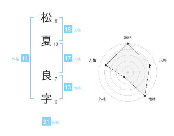 松夏 良字さんの総格は31画の5点!