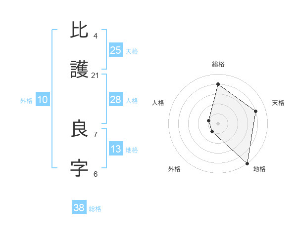 比護 良字さんの総格は38画の4点!