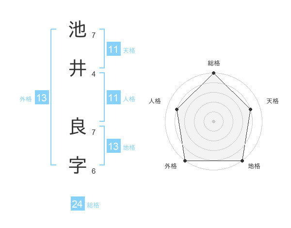 池井 良字さんの外格は13画の5点!