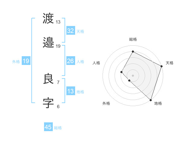 渡邉 良字さんの天格は32画の5点!