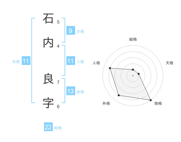 石内 良字さんの地格は13画の5点!