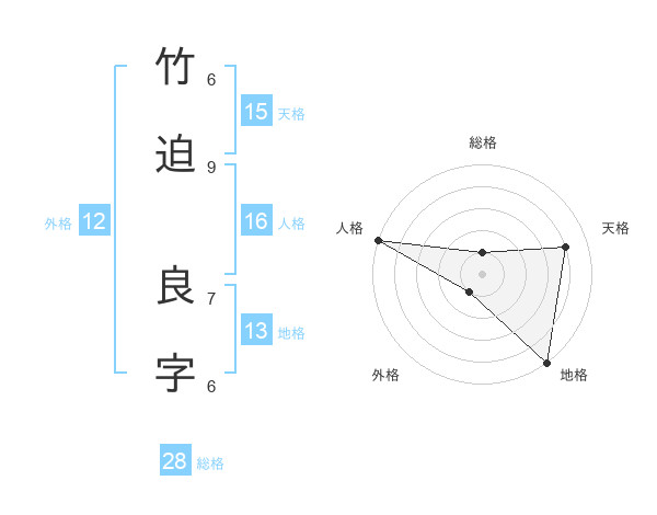 竹迫 良字さんを姓名の画数から五運を鑑定