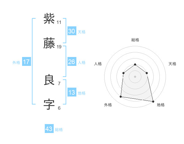 紫藤 良字さんを姓名の画数から五運を鑑定