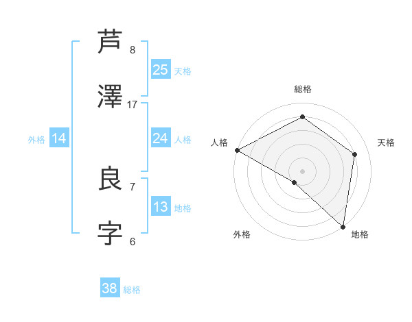 芦澤 良字さんを姓名の画数から五運を鑑定