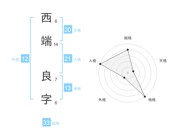 西端 良字さんの地格は13画の5点!