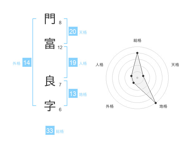 門富 良字さんの総格は33画の4点!