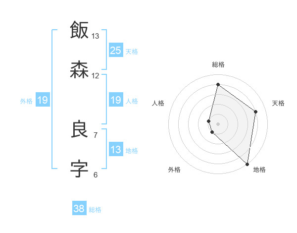 飯森 良字さんの総格は38画の4点!