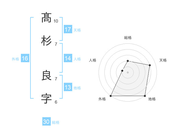 髙杉 良字さんの総格は30画の2点!